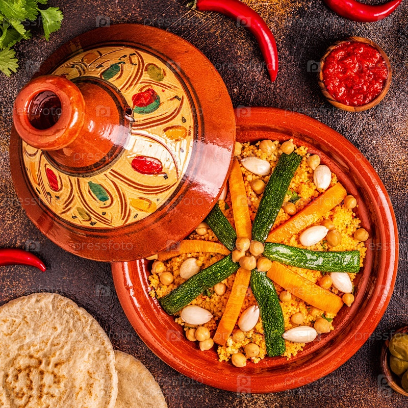 Овощной тажин с миндалем и кускусом из нута
