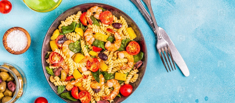 Салат из макарон Фусили с креветками