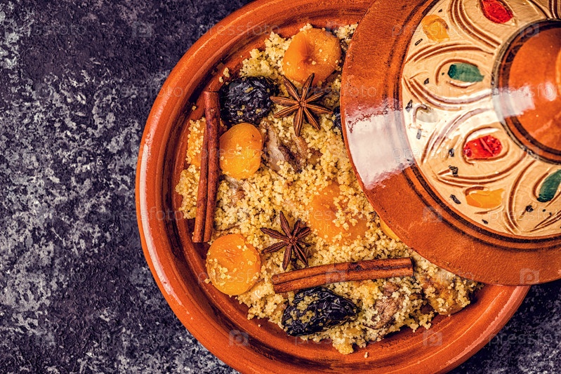 Традиционный марокканский тажин из курицы с сухофруктами и специями