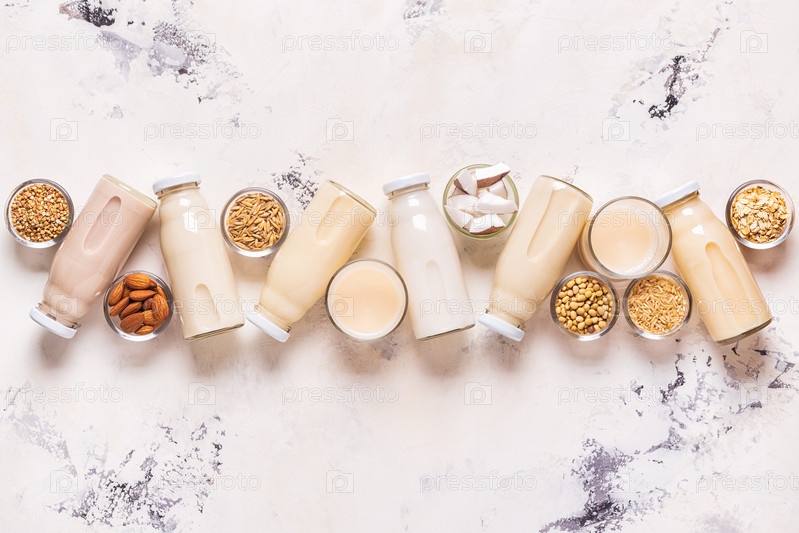 Бутылки альтернативного молока и ингредиентов
