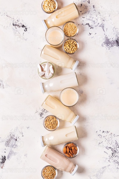 Бутылки альтернативного молока и ингредиентов