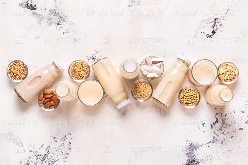Бутылки альтернативного молока и ингредиентов
