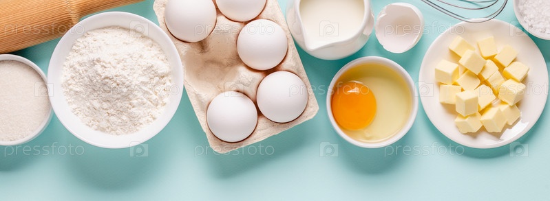 Выпечка или приготовление пищи фон. Ингредиенты, кухонные принадлежности для выпечки