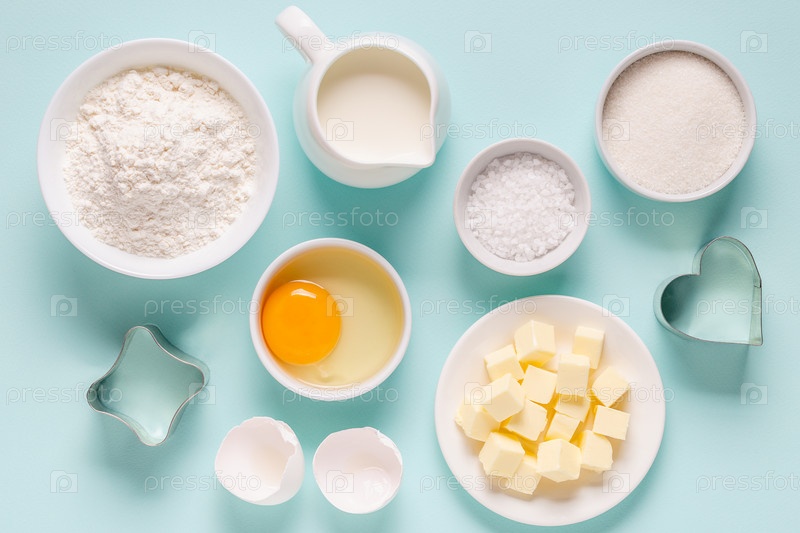 Выпечка или приготовление пищи фон. Ингредиенты, кухонные принадлежности для выпечки