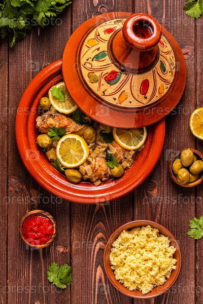 Традиционный марокканский тажин из курицы с солеными лимонами и оливками