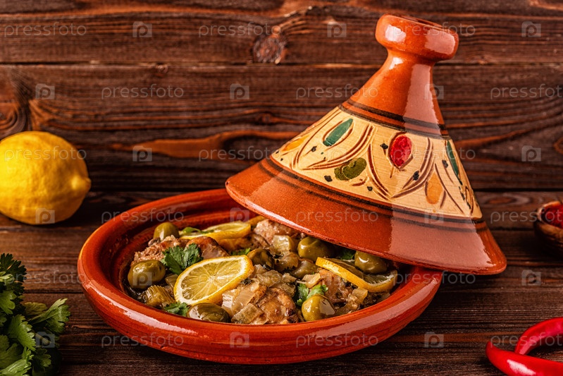 Традиционный марокканский куриный таджин с оливками и солеными лимонами