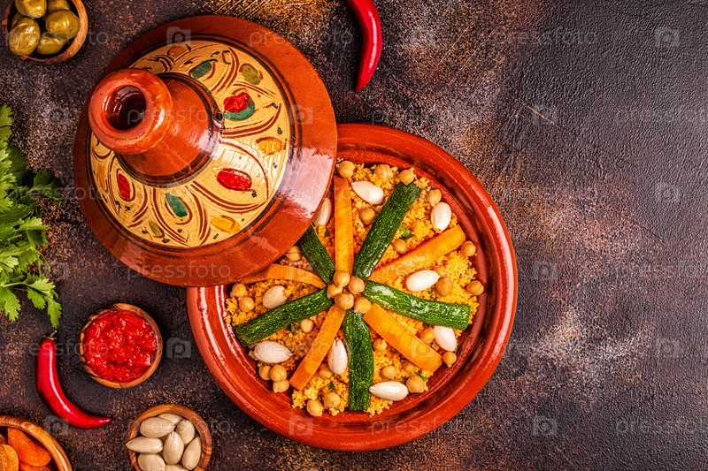 Овощной тажин с миндалем и кускусом из нута