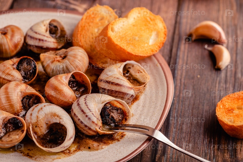 Улитки с маслом на тарелке