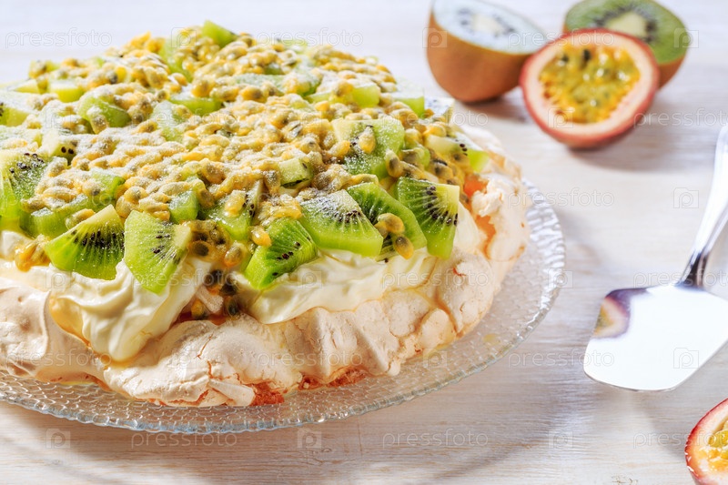 Безе Павлова со взбитыми сливками и свежими фруктами