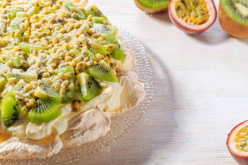 Безе Павлова со взбитыми сливками и свежими фруктами