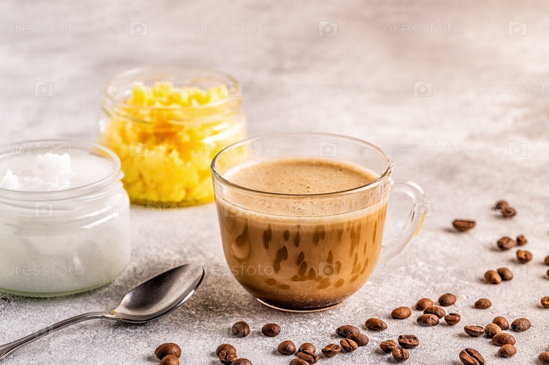 Кофе, смешанный с маслом ги и кокосовым маслом MCT