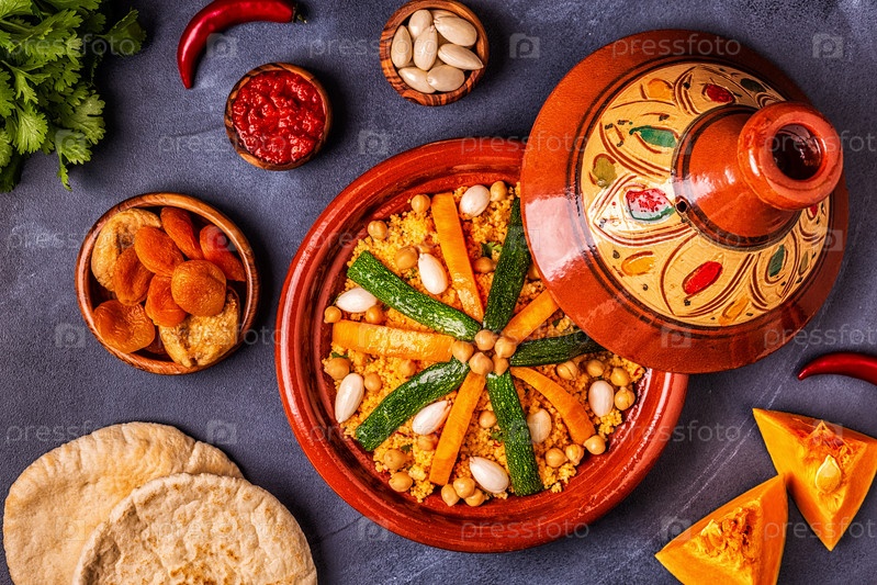 Овощной тажин с миндалем и кускусом из нута