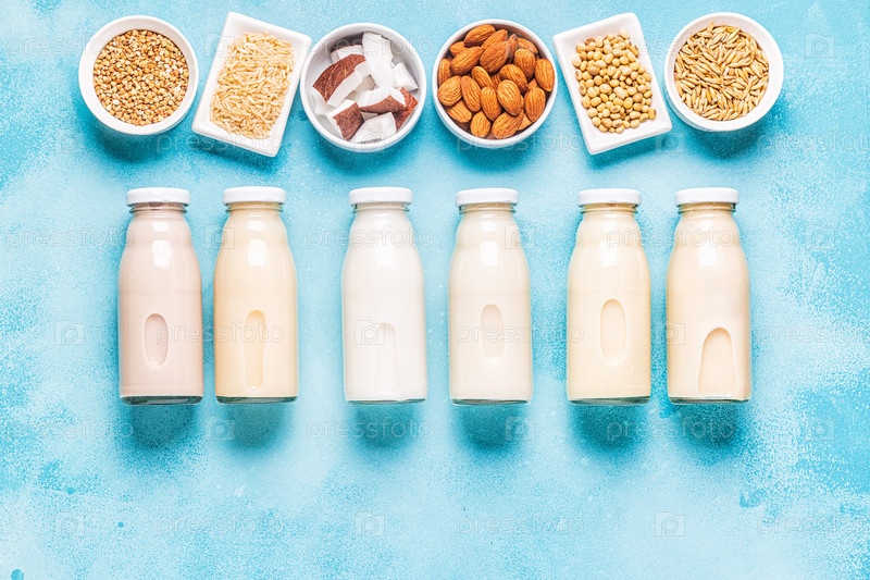 Бутылки альтернативного молока и ингредиентов