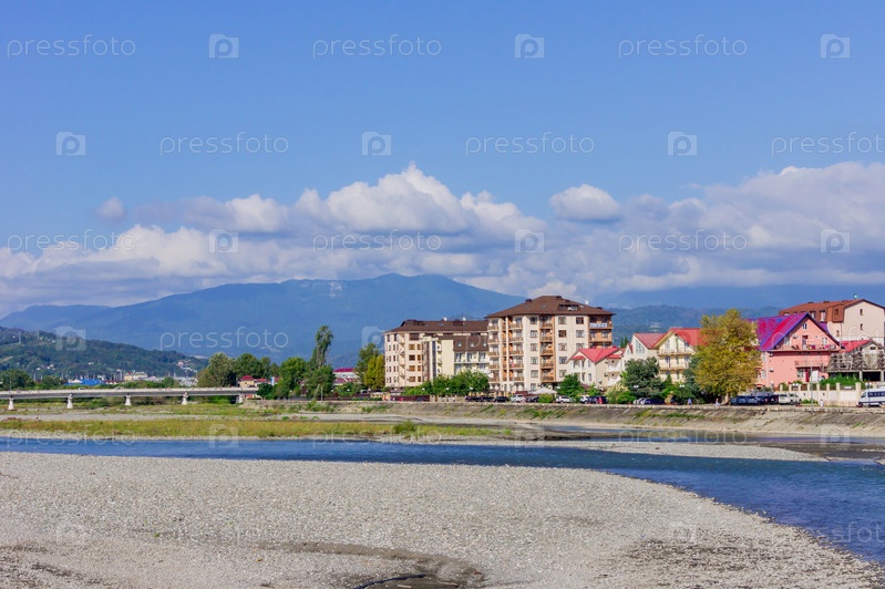 СОЧИ, РОССИЯ - 07 сентября 2019 г.: Вид на набережную реки Мзымта в Роза Хутор