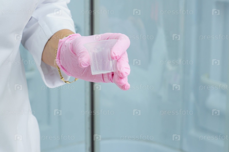 Косметолог готовит пилинг в мерном контейнере для нанесения на лицо