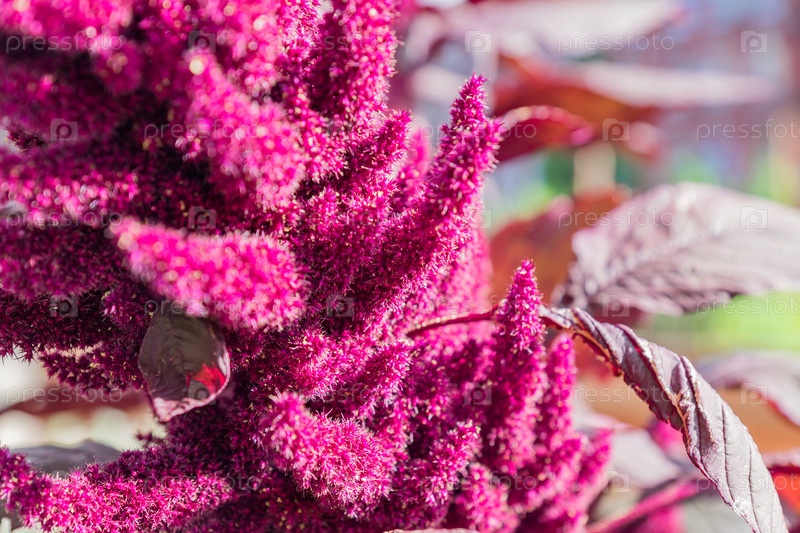 Крупный план растений амаранта в солнечный день, выборочный фокус