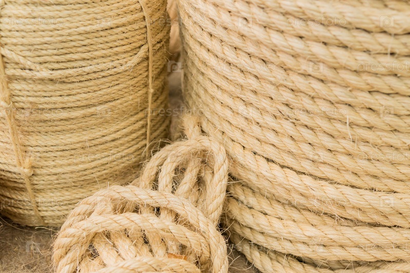 Крупный план скрученной веревки из сизаля. Фон