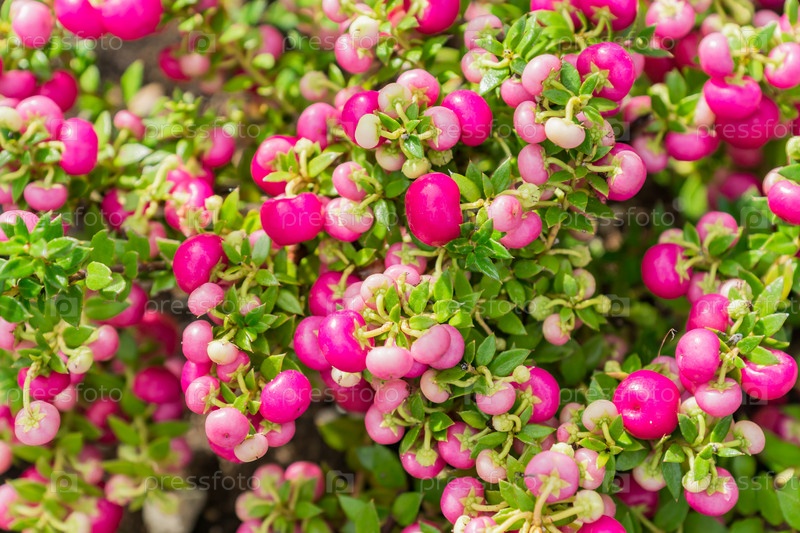 Pernettya mucronata вечнозеленый кустарник с розовыми ягодами.Осенний фон растений