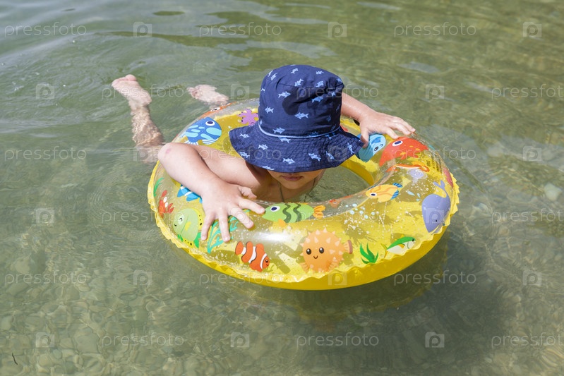 Италия. Скаури. Мальчик плавает на надувном круге в море. Италия. Скаури