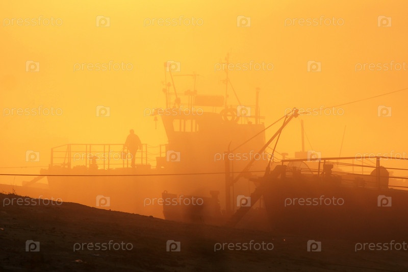 Россия. Салехард. Рыболовные лодки на рассвете. Транспорт рыбаков у причала. Россия. Салехард. Рыболовные лодки на рассвете. Транспорт рыбаков на пирсе