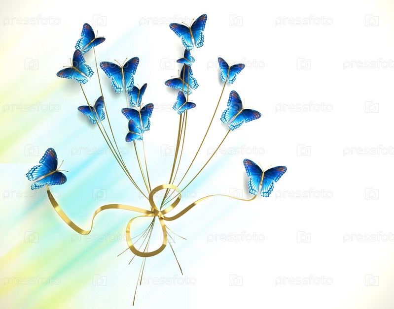 Букет бабочек на белом фоне