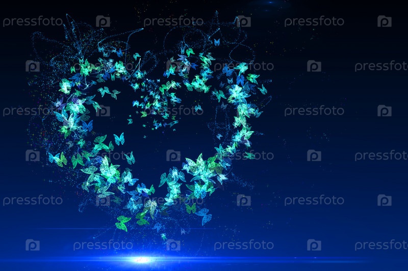 Модель в форме сердца из бабочек, созданная в 3д редакторе