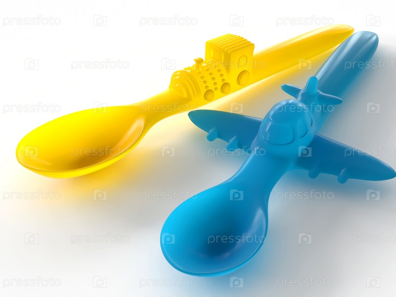 Мягкие синие и желтые силиконовые ложки с самолетом для ребенка