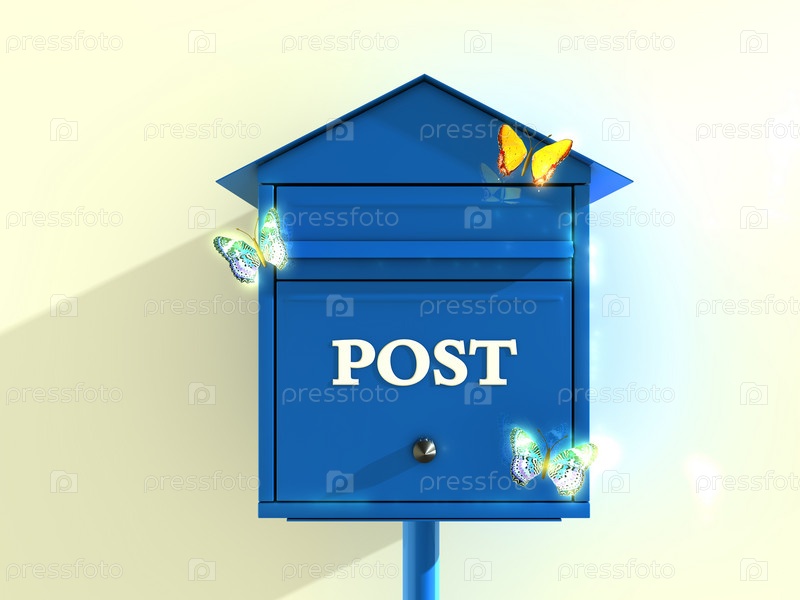 Синий почтовый ящик с бабочками