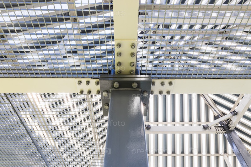 Массивная промышленная стальная конструкция с болтами, соединяющими стальные балки