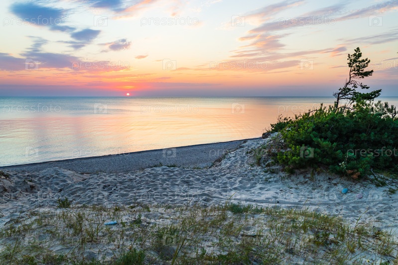 Закат на берегу Балтийского моря. Типичный пляжный пейзаж Балтийского моря