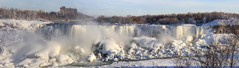 Ниагарский водопад на пограничной реке Онтарио между США и Канадой Онтарио в зимнее время