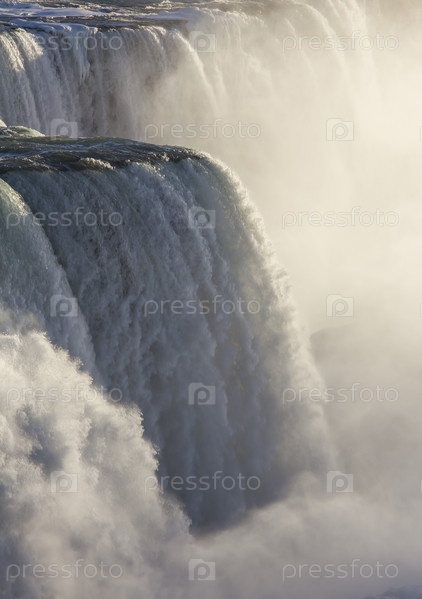 Вода падает на Ниагарский водопад на границе реки Онтарио между США и Канадой Онтарио в зимнее время
