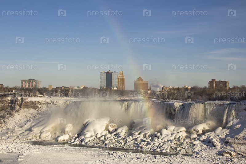 Радужный Ниагарский водопад на границе реки Онтарио между США и Канадой Онтарио в зимнее время
