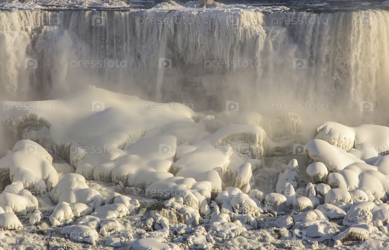 Ниагарский водопад на пограничной реке Онтарио между США и Канадой Онтарио в зимнее время