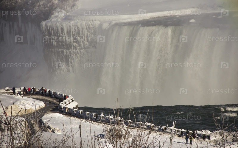 Смотровая площадка у Ниагарского водопада на границе реки Онтарио между США и Канадой Онтарио в зимнее время