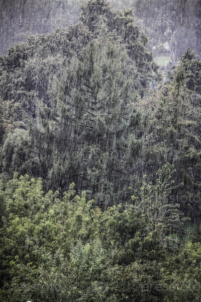 Сильный ливень и буря в лесу
