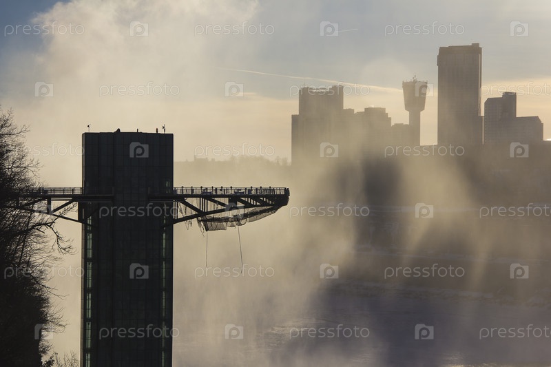 Смотровая площадка башни у Ниагарского водопада на границе реки Онтарио между США и Канадой Онтарио в зимнее время