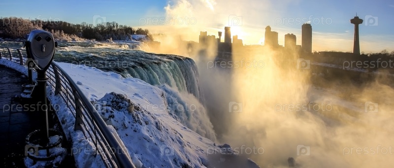 Ниагарский водопад на пограничной реке Онтарио между США и Канадой Онтарио в зимнее время