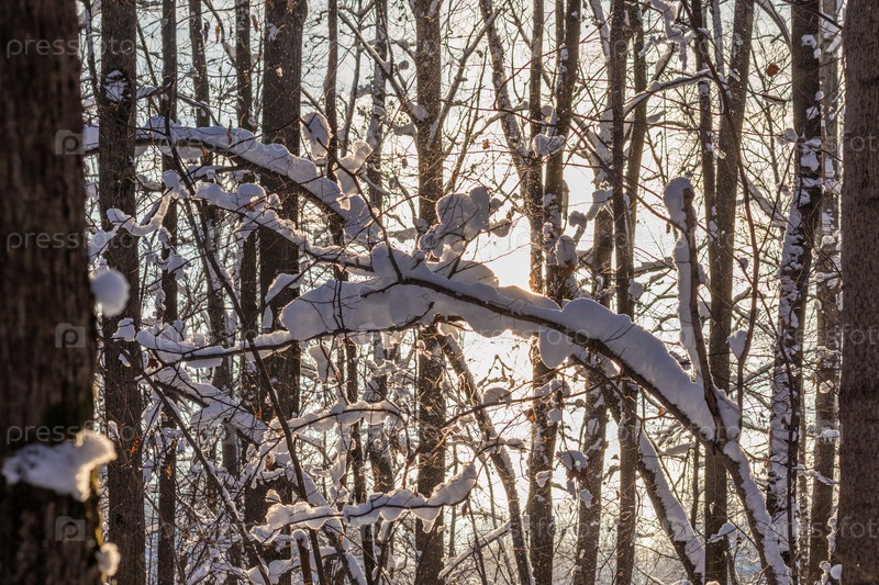 Зимний пейзаж, фон заснеженных деревьев в лесу