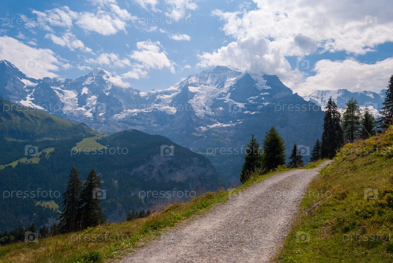 Дорога в летние горы. прекрасный вид на швейцарские Альпы