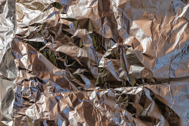Серебряный фон из мятой металлической фольги, декоративная текстура. яркая блестящая натуральная текстура скомканного листа