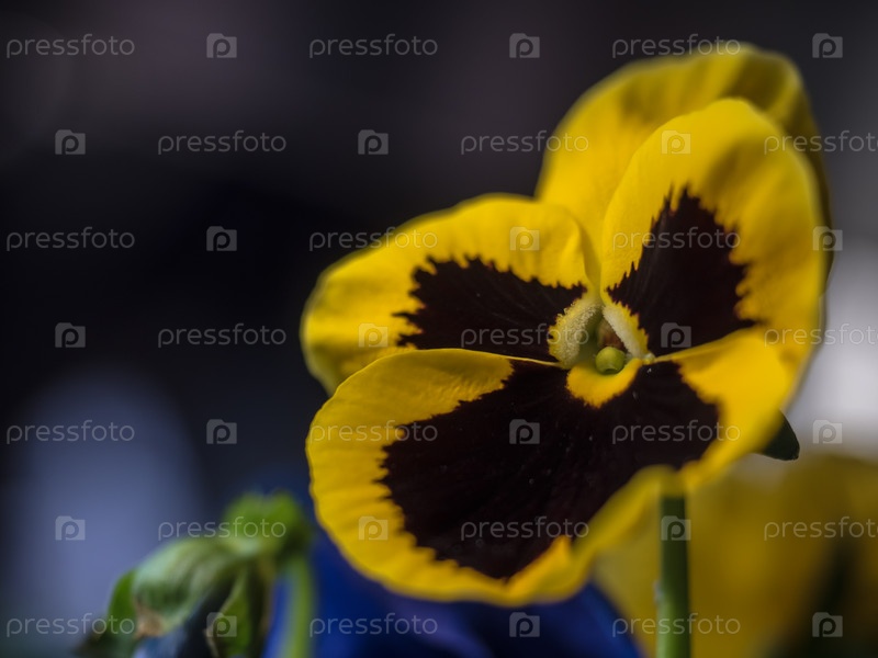 Цветок анютины глазки ярко-желтый с темным средним крупным планом