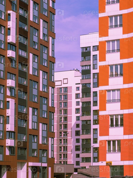 Современный жилой комплекс с красочным оформлением фасадов зданий и развитой инфраструктурой. Москва, Россия