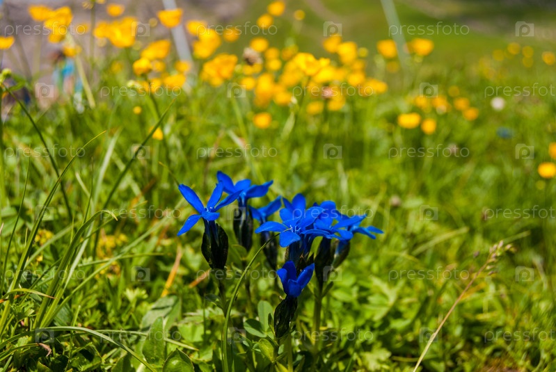 Голубой альпийский цветок из Швейцарии Gentiana bavaria
