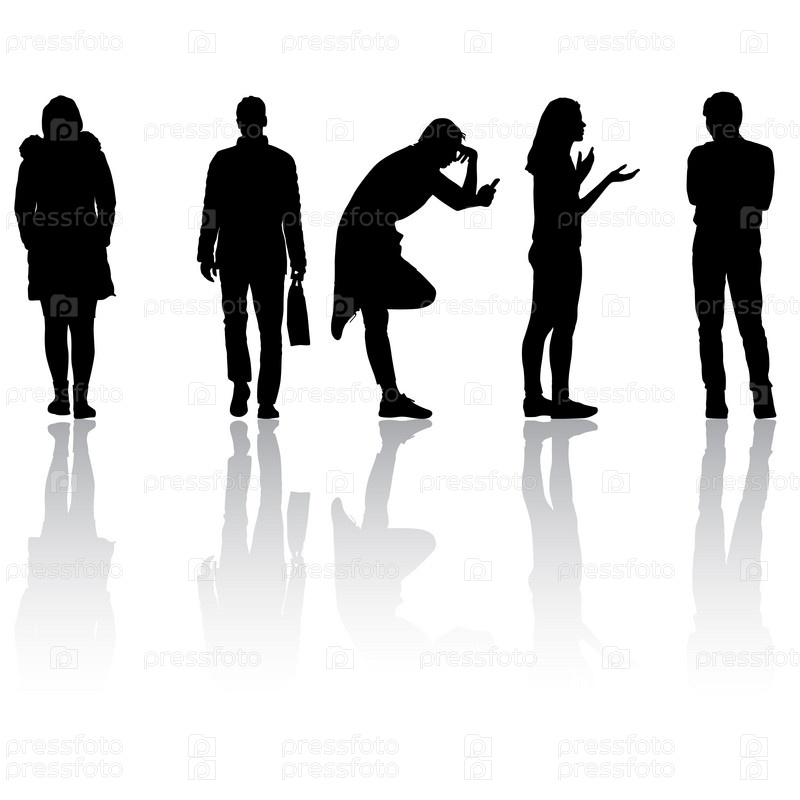 Силуэт группы людей, стоящих на белом фоне