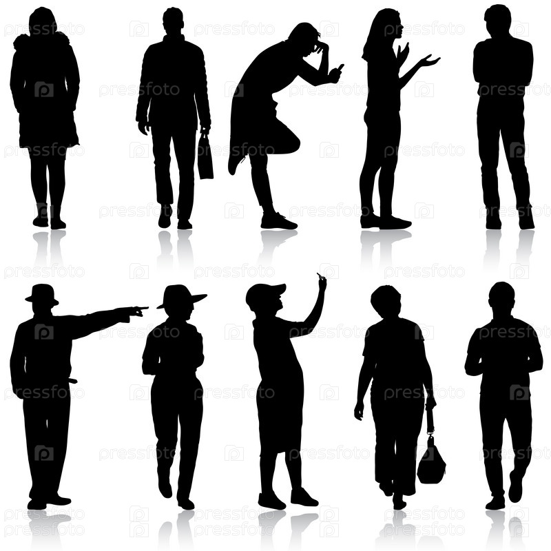 Силуэт группы людей, стоящих на белом фоне
