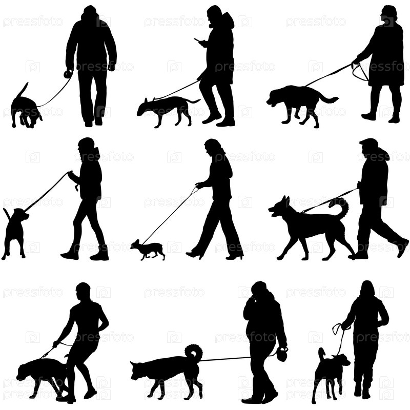 Установите силуэт людей и собак на белом фоне