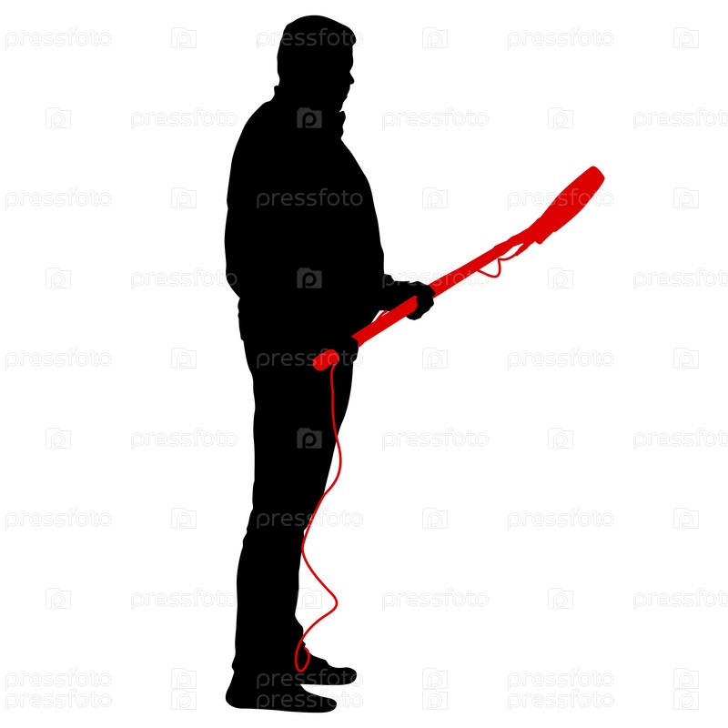 Звукорежиссер с микрофоном в руке. Силуэты на белом фоне