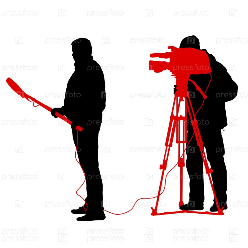 Оператор с видеокамерой. Силуэты на белом фоне