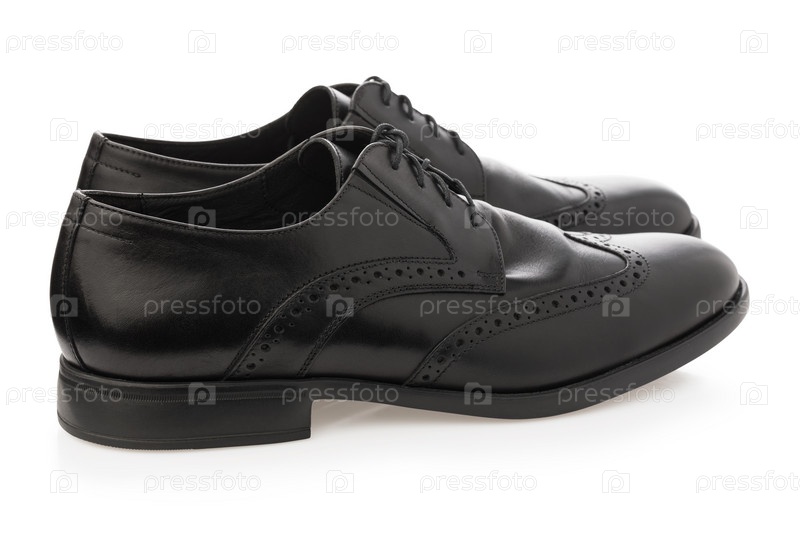 Черные классические кожаные мужские туфли со шнурками на белом фоне